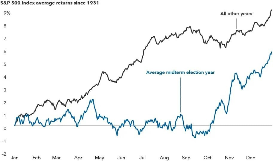 Briefly, here are 2 charts to shed light on how 2026 will be. 2026 is year 2 of Trump’s Presidential Term and also the Midterm Election Year.