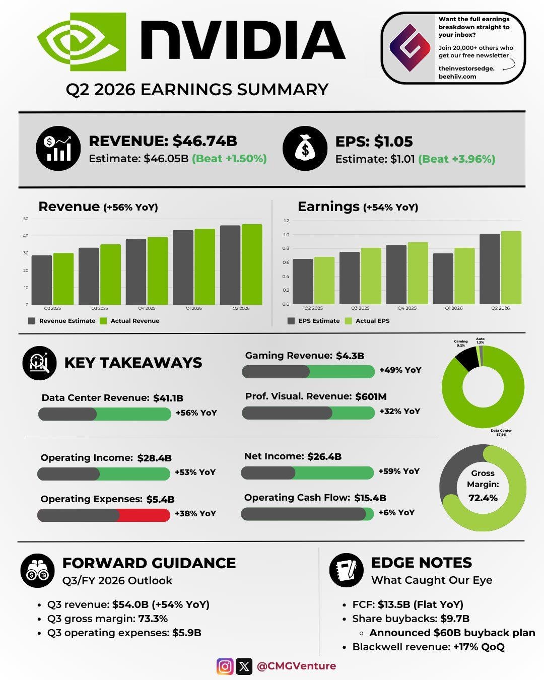 Zee here. When the world's most valuable chipmaker reports earnings, the entire tech ecosystem listens. Nvidia just delivered their Q2 fiscal 2026 results, and while the headlines focus on whether growth is "slowing", the smart money sees something different entirely.