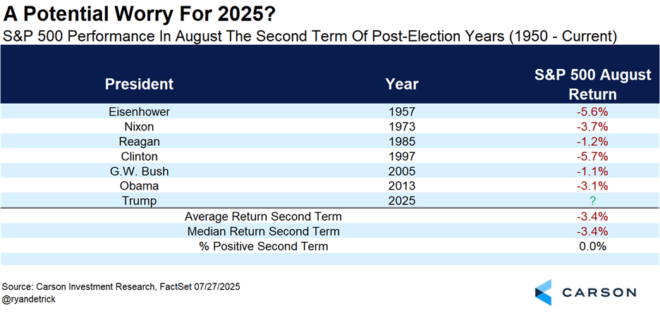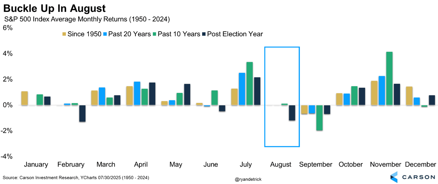 And historically, August is the third worst month for the stock market going back to 1950. In post-election years, it’s even worse—only February tends to be uglier.