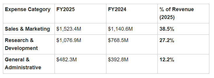 CrowdStrike maintains disciplined expense management while continuing to invest heavily in growth. The company’s sales and marketing efficiency, measured by the “Magic Number” (revenue growth per dollar of sales spend), demonstrates strong return on marketing investments.