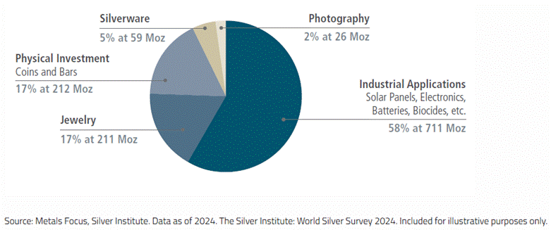 Unlike gold which is seen as a monetary asset, silver has a dual role. It is more cyclically exposed given its industrial end-use for electronic products like solar panels and EVs. There is currently a structural deficit where industrial demand consistently outpaces available supply.