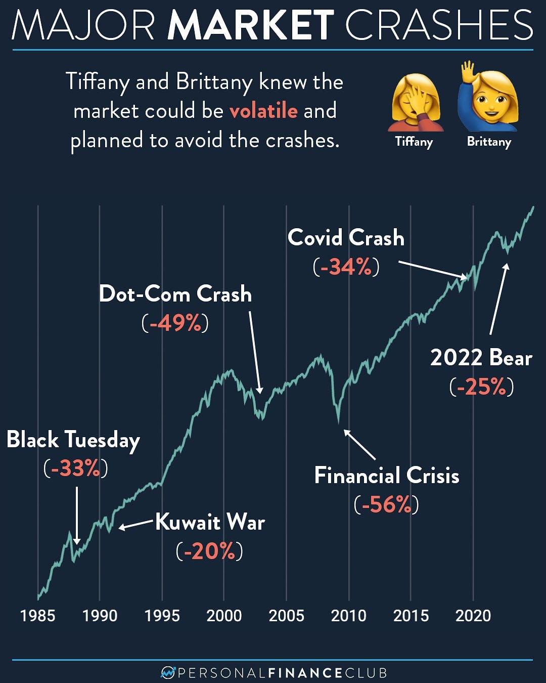 Consider the major market crashes since 1982: