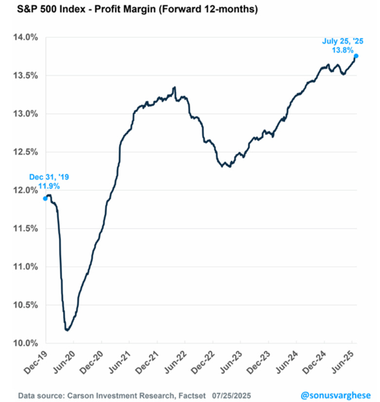 Strong corporate earnings, rising profit margins, and a resilient economy create a favorable backdrop for long-term investing. Today, 97% of S&P 500 companies have beaten earnings expectations this reporting season, with earnings hitting record levels.