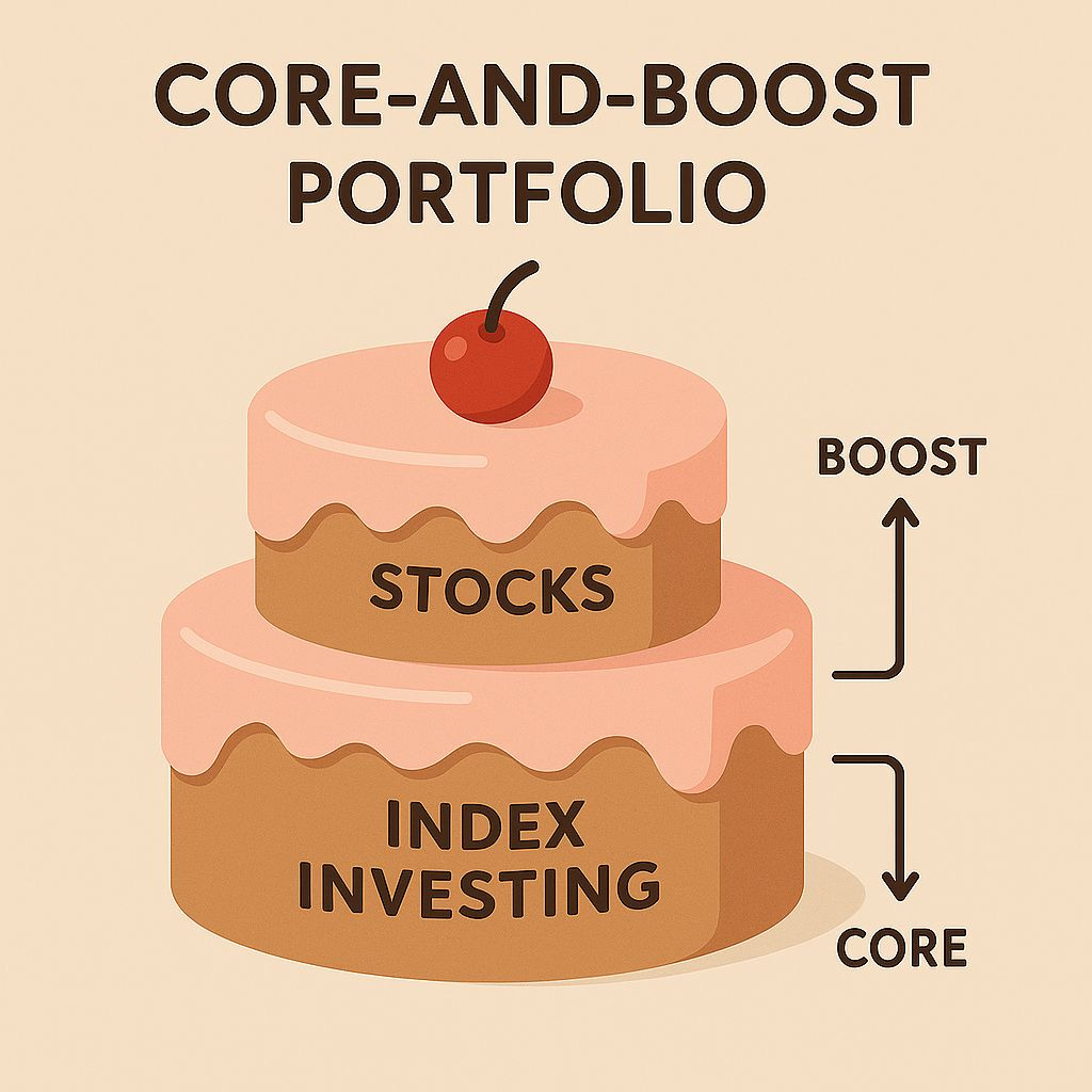 You get stability from indexing, and excitement (plus upside) from your own picks.