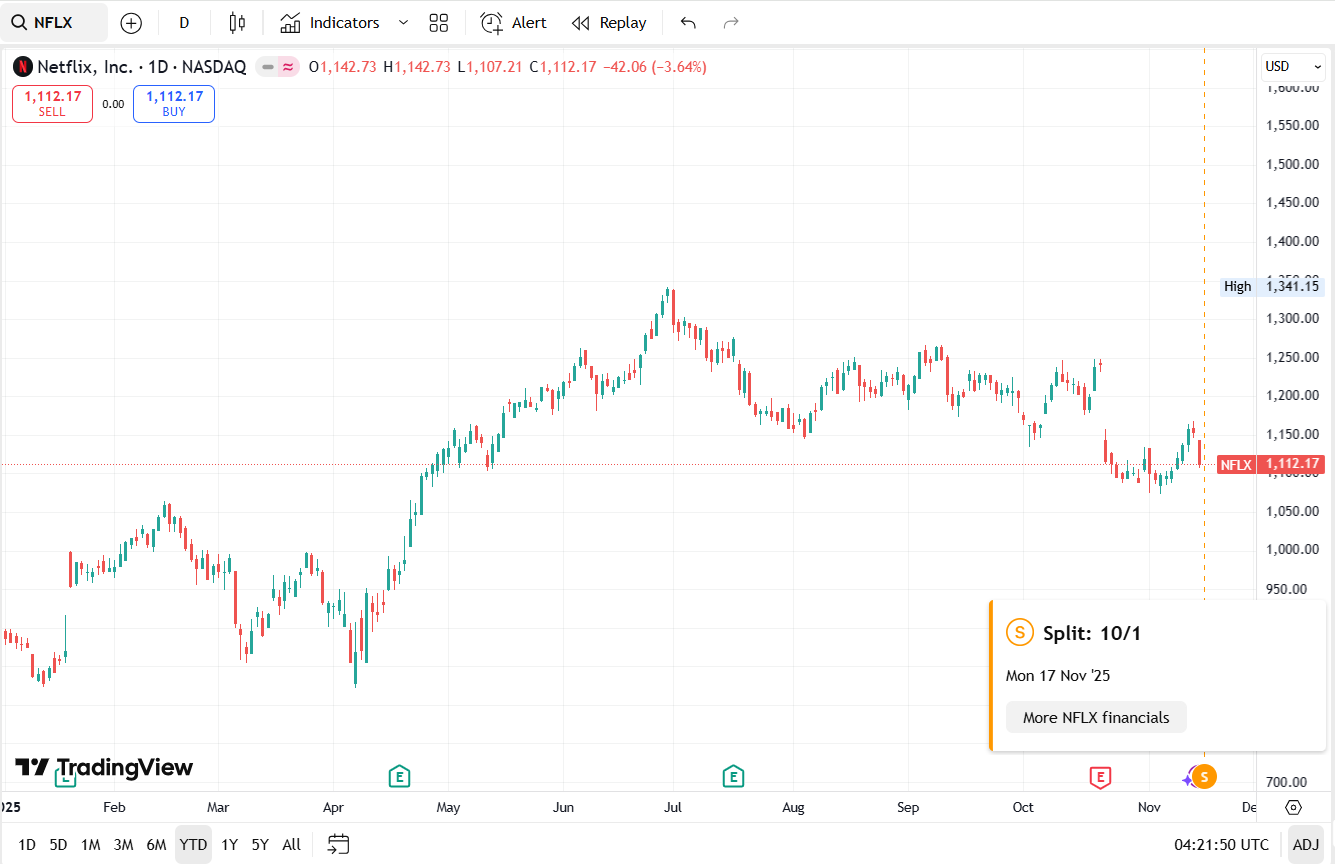 On 30 October 2025, Netflix’s board approved a 10-for-1 forward stock split.