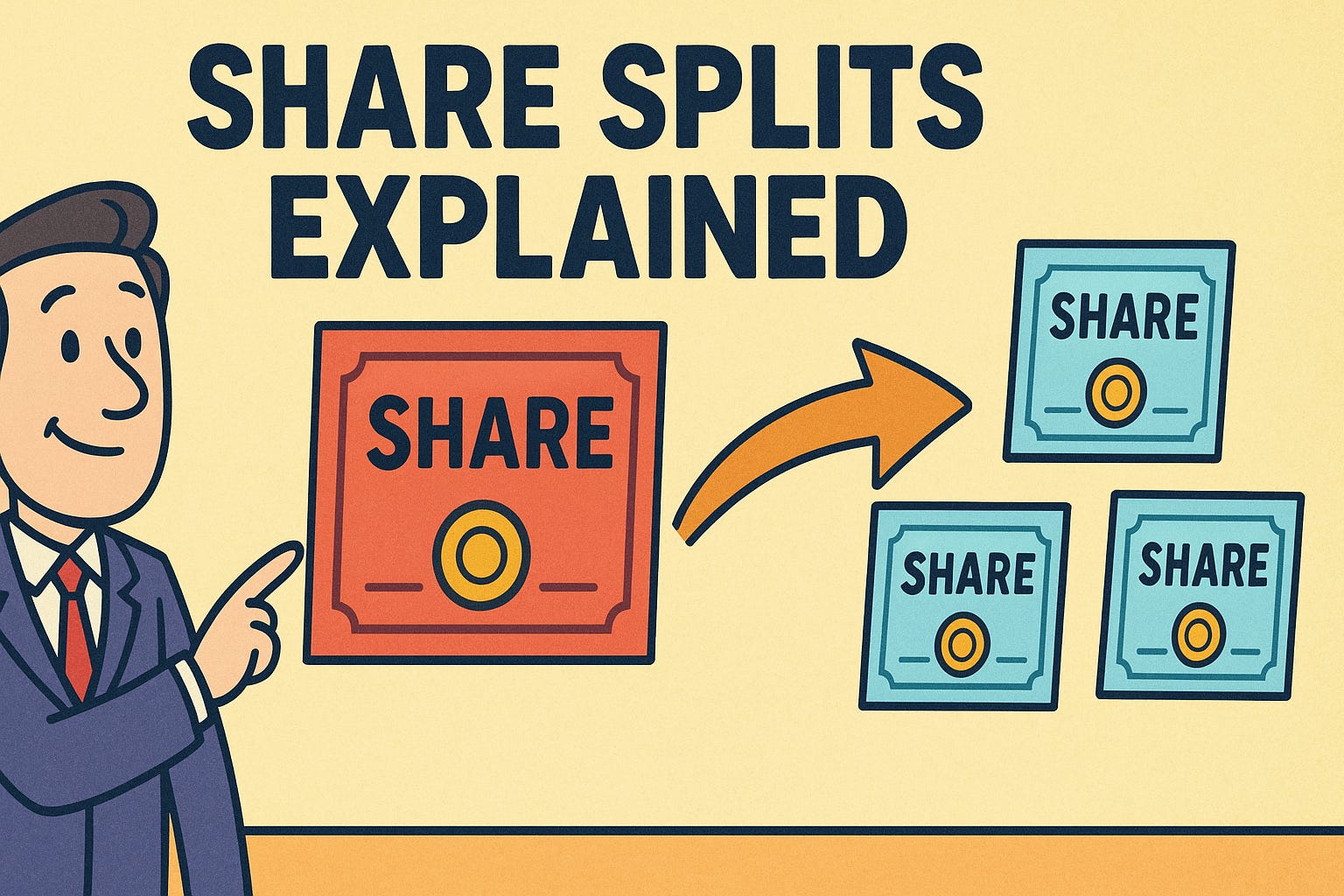 Share splits can look confusing at first, but the idea behind them is actually very simple. Companies use splits to adjust the number of shares in circulation without changing the total value of the company. Think of it like cutting a pizza into more slices, more pieces, but the pizza itself is still the same size.