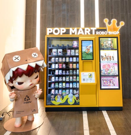 Pop Mart operates nearly 600 stores and 2,600 automated vending machines across more than 30 countries. The company is actively expanding into previously untapped markets including the Middle East, Central Europe, and Central/South America.
