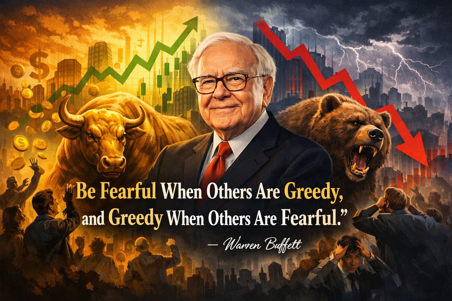 When everyone around you is excited and piling into stocks, prices tend to be inflated that’s the time to be cautious. But when panic sets in and investors are selling everything in sight, prices often drop below what businesses are truly worth and that’s when real opportunities emerge.