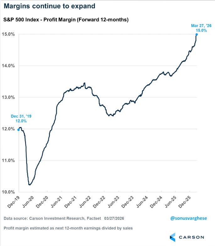 For investors, rising profit margins across the entire S&P 500 (500 of America’s largest companies) is about as positive a signal as you can find. It means the broad economy of public companies is becoming more productive, not less.